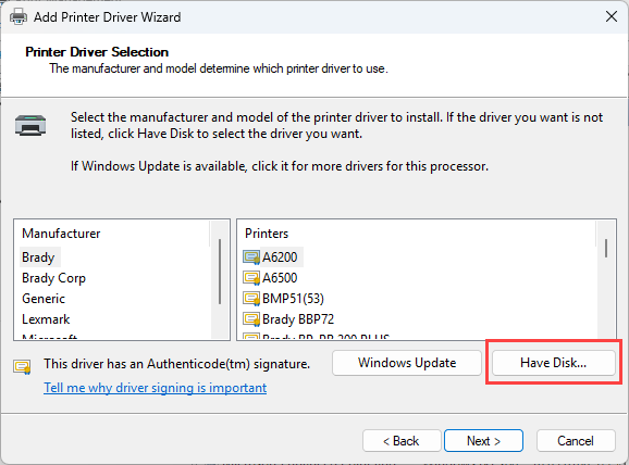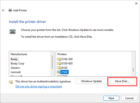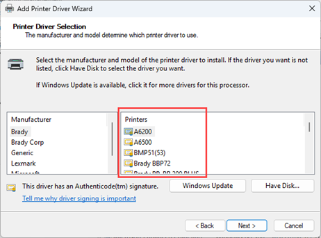 Note: If you are using Brady Workstation then driver installation may not be necessary, see this article for a list of printers that do not require a driver with BWS - Brady Workstation - Direct Print Compatibility.