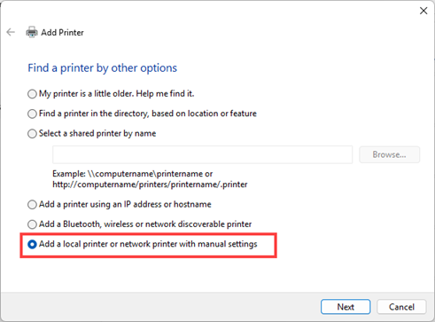 Note: If you have a networked printer, go to Devices and Printers within Windows and choose "Add a Printer" at the top. Choose the TCP/IP option and complete the driver wizard.