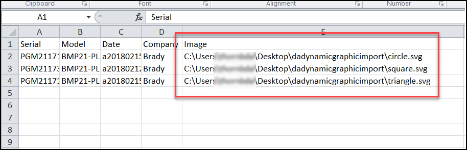 Method 2: You can enter the complete file path in your spreadsheet instead of simply adding the image name. This method does not require specifying the file path in your template