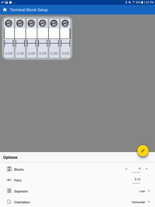 - Select the yellow circle with a pencil to add text to the terminal blocks.