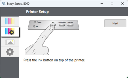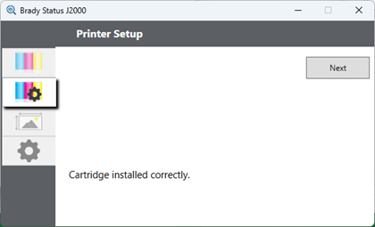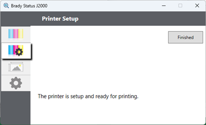 Launch the J2000 status monitor from the desktop icon. This tool installs as part of the J2000 driver installation. This tool confirms the J2000 is connected and communicating installed ink and ribbon materials information is communicated to the PC.