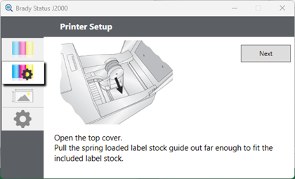 The J2000 requires a driver when used with Brady Workstation. The driver installation will install both the driver and the J2000 Status Monitor: How to Install the J2000 Driver.