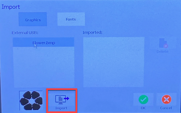 Select Import. The graphic will be imported and the name will display in the Installed list.