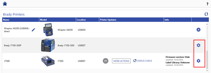 If a gear icon displays instead of X, click the gear and follow the steps in the Printers installed with a Driver section.