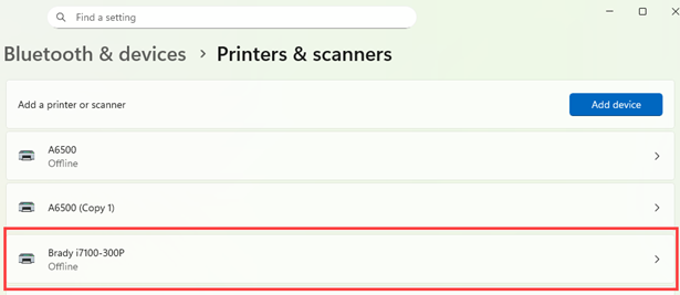 - Close Brady Workstation and reopen the software. The printer will no longer appear in the Printers app.