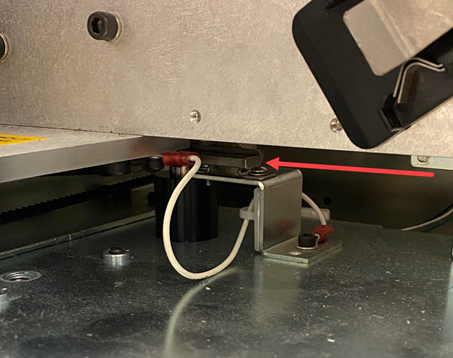 - Manually shuttle the slide track forward until the back inside oiler is exposed. The back oiler can be accessed underneath the print and wrap mechanism towards the back.