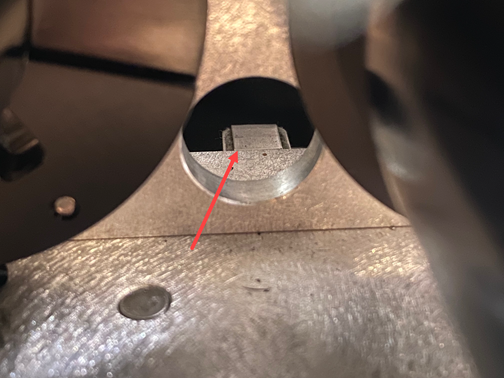 - Manually shuttle the slide track back until the access hole (on the bottom of the track) is aligned with the front inside oiler.