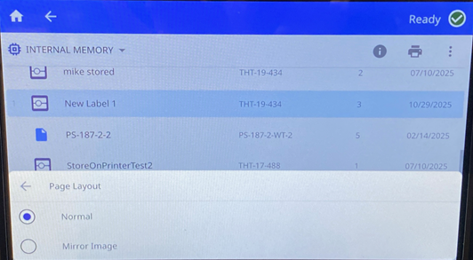 - Page Layout: Tap the radio button for Normal or Mirror Image to change the page layout. Tap the back arrow to go to the other settings.